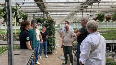Zunächst erhielten die Gäste eine Führung durch die Gewächshäuser. Der Betrieb wird in dritter Generation von den Brüdern Aldenhoff geführt ist einer von vier Gartenbaubetrieben in dem Schermbecker Ortsteil. „Mit unserer Leidenschaft und unserem Know-How für Azaleen bringen wir eine Vielzahl von Azaleen-Sorten von August bis März termingerecht für Großabnehmer zur Blüte. Zudem produzieren wir ein breites Sortiment an Beet- und Balkonpflanzen, Stauden und Heide zu den unterschiedlichen Saisonzeiten. Dabei legen wir viel Wert auf Qualität, auf neue Sorten und auf innovative, exklusive Produkte“, erklärt Peter Aldenhoff.