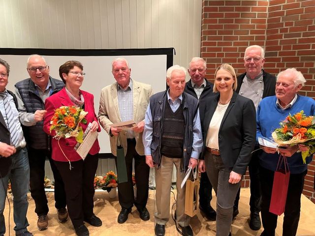 40 Jahre Mitgliedschaft in der CDU: Gisela Triptrap, Hannelore Ulrich, Gretel Lange, Ursula Borgmann, Josef Borgmann, Hermann Möllmann, Christoph Möllmann, Meinolf Berger,